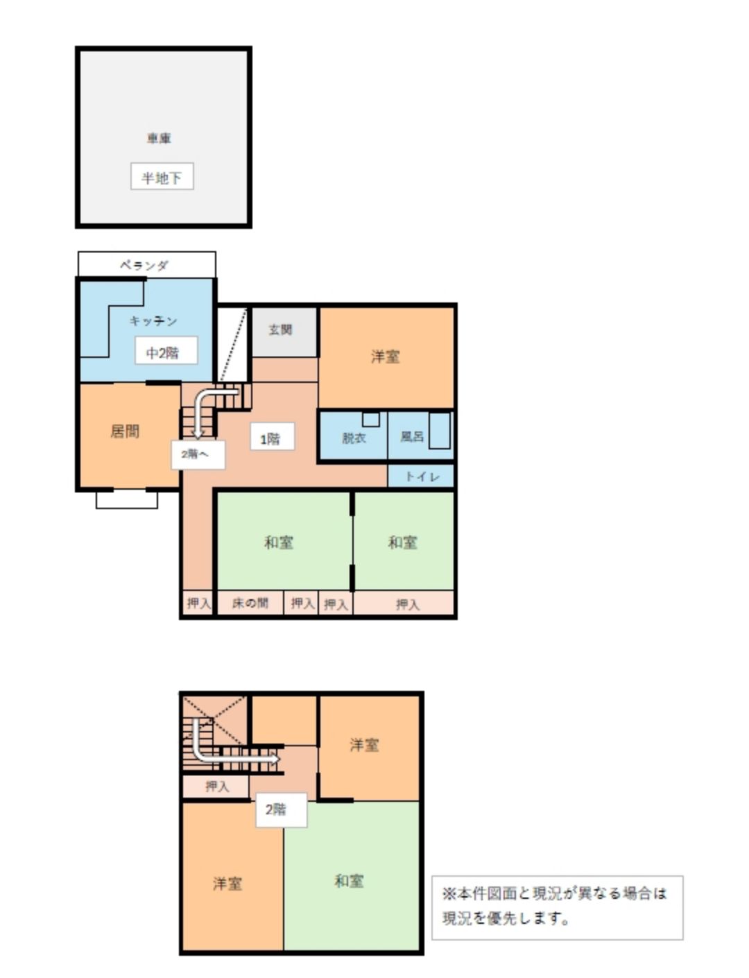 | 間取り詳細 | 1階 居間[16)畳 台所 風呂 トイレ その他 (倉庫) 2階 居間(10)畳 台所 薬品 トイレ和室 (10)畳 (6)畳 (6.75) 畳 |